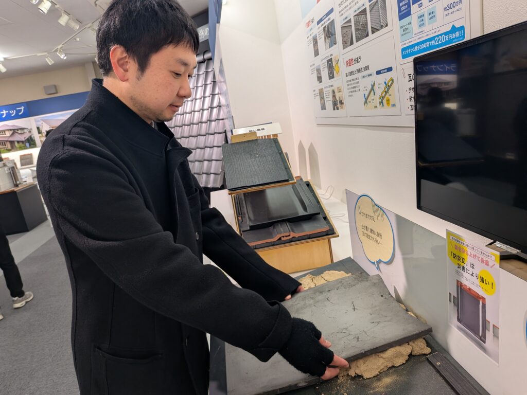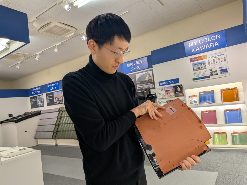 ショールームを見て印象的だったのは、瓦という素材でありながら、従来の瓦のイメージにとどまらない製品づくりが行われていることです。中空構造など、工業製品としての発想が取り入れられている点に意外性を感じました。