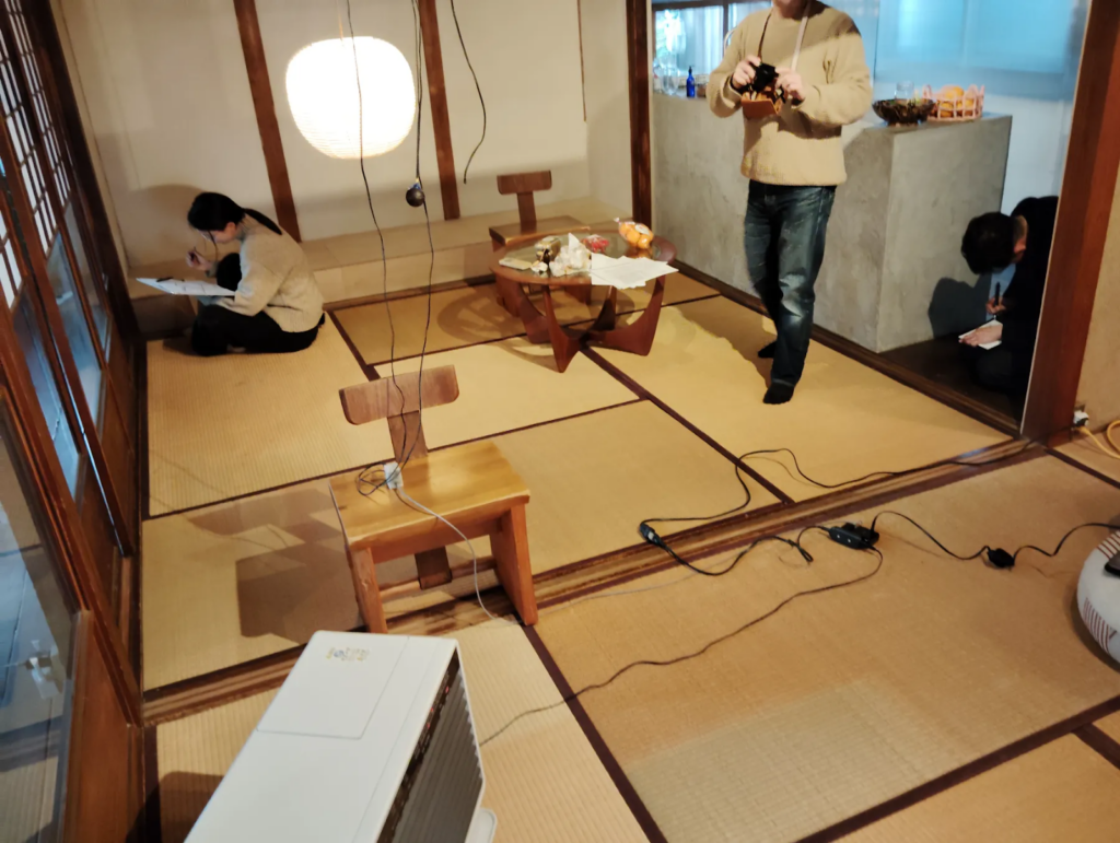 Bridge Studioでの断熱ワークショップ:気密性能の有無によって、町家の中での「対流」と「放射」による暖房効果にどのような違いが出るかを比較