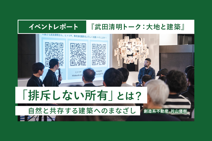 TAG イベントレポート 創造系不動産・片山優樹による「武田清明トーク:大地と建築」イベントレポート 2025.09.30 イベント 片山優樹 ヒトツチ 建築家・上野辰太朗による「魚谷繁礼トーク:都市の時間と瓦」レポート 2025.01.29 イベント 上野辰太朗 ヒトツチ キュレーター・片桐真理子による「周防貴之トーク:地形としての建築」レポート 2024.05.17 イベント 片桐真理子 ヒトツチ 庭師・梅野星歩による「EARTHEN:火と土の建築」レポート 2023.12.24 イベント 梅野星歩 ヒトツチ